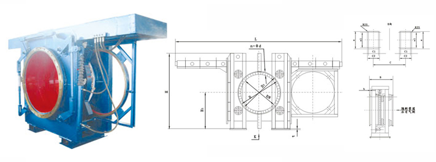 本阀门在设计上吸收了国外插板阀浮动阀板的优点;压紧机构采多点同步夹紧机构机构,具有密封性能好、工作可靠、维修方便等特点。