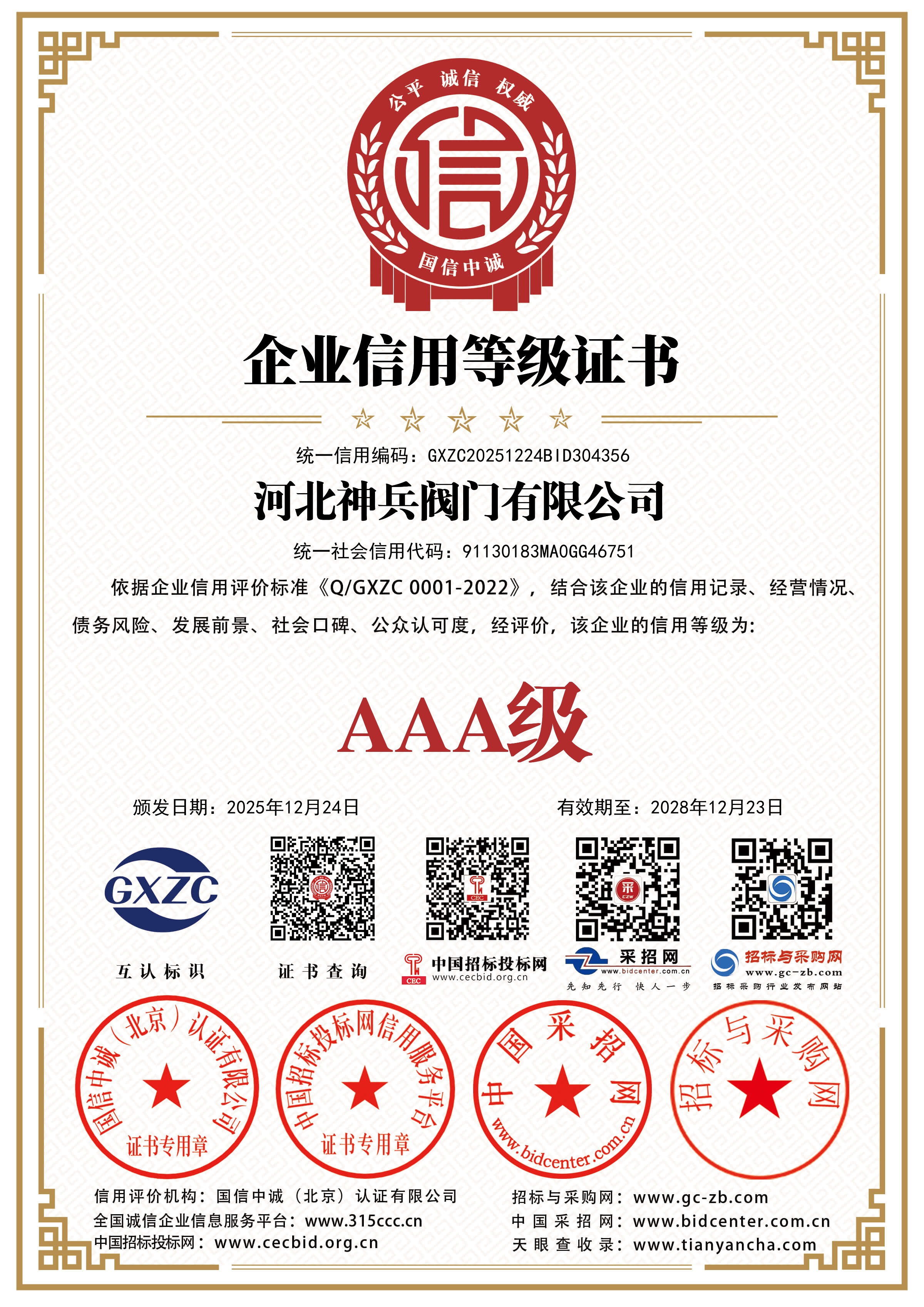 企业资信等级证书